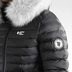 De gros 💯 Doudoune Chauffante Capuche Fourrure Femme Val Thorens Noir Gris de Comme Des Loups 💯