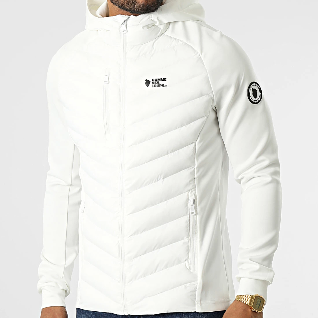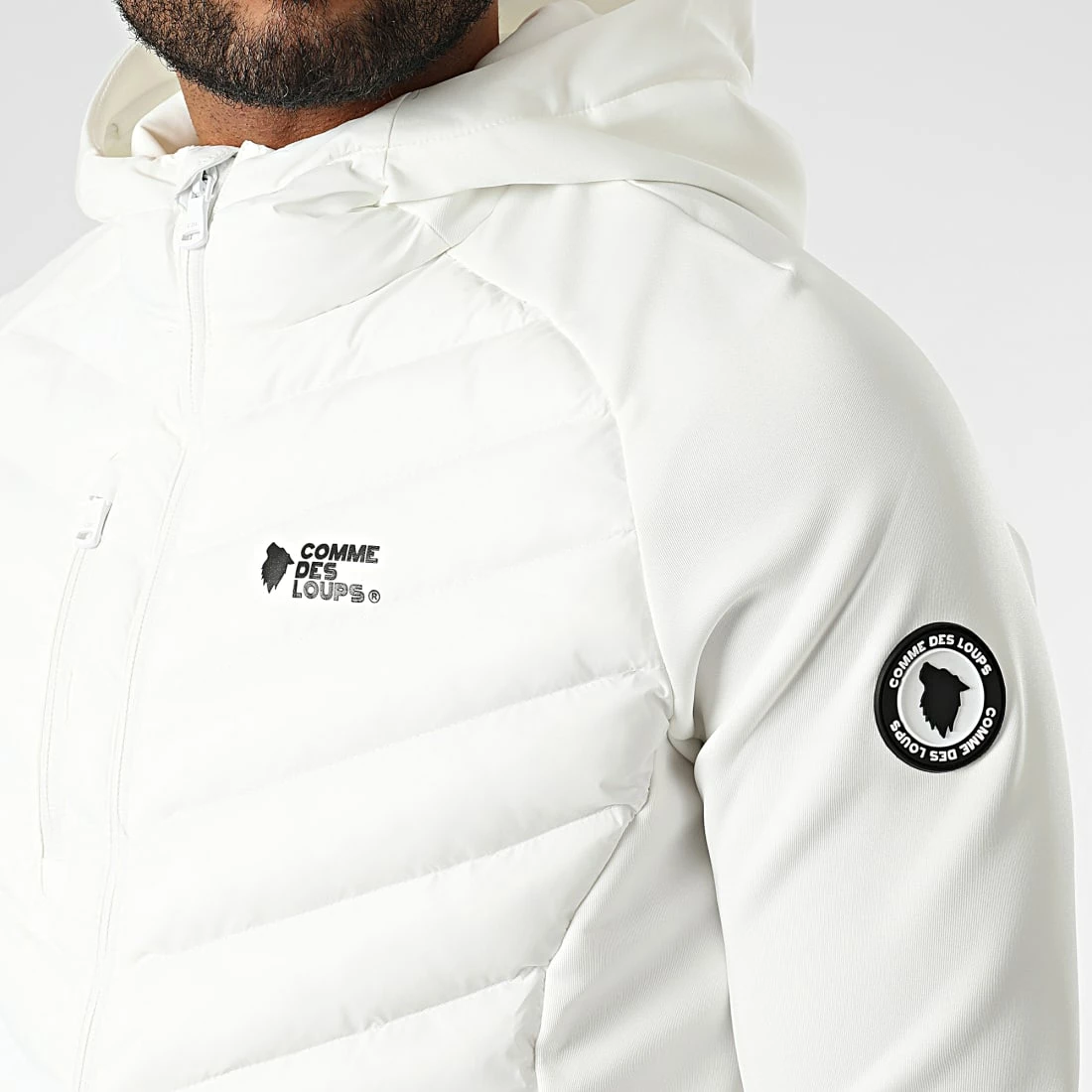 • Veste zippée capuche avec empiècements matelassés et rembourrés type doudoune