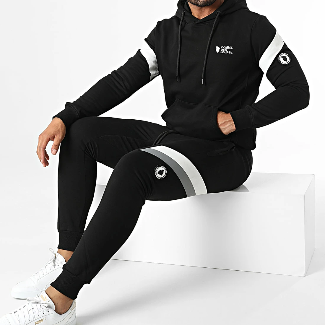 • Ensemble sweat capuche et pantalon jogging tendance avec visuel Comme Des Loups brodé à l’avant et au dos