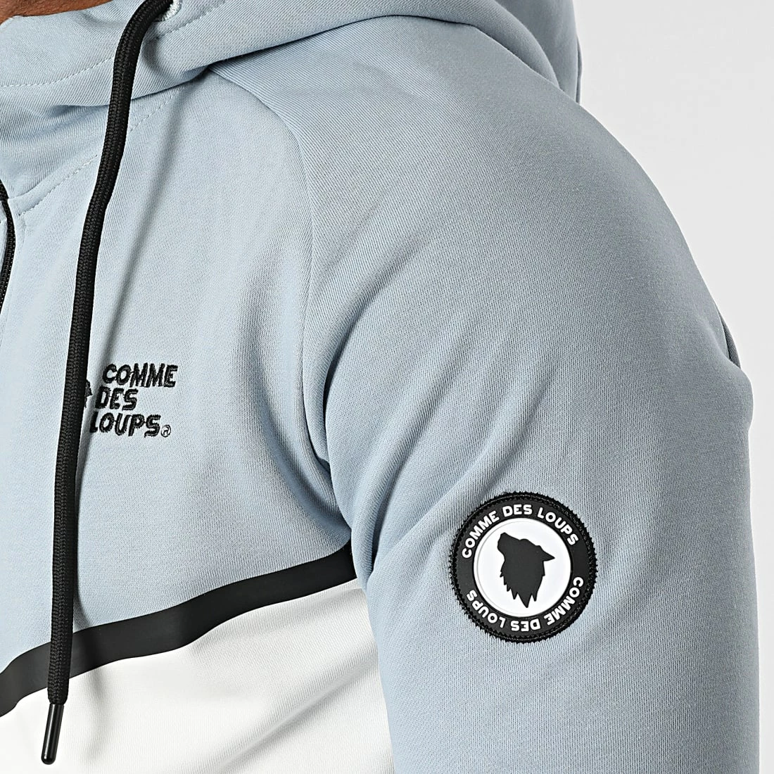 • Ensemble sweat zippé capuche et pantalon jogging bicolore avec visuel Comme Des Loups brodé