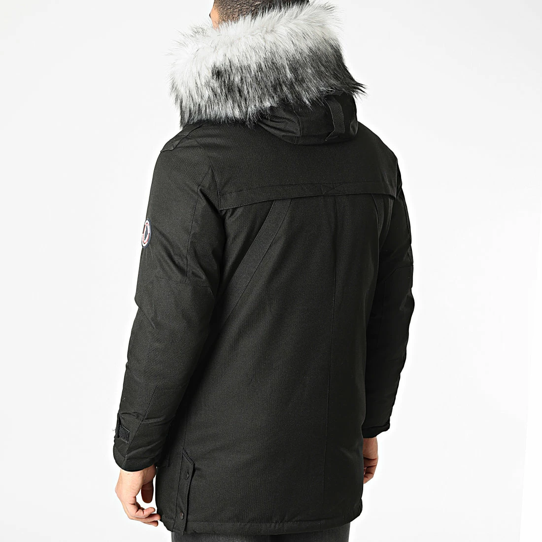 • Parka chauffante avec capuche et fourrure synthétique amovible