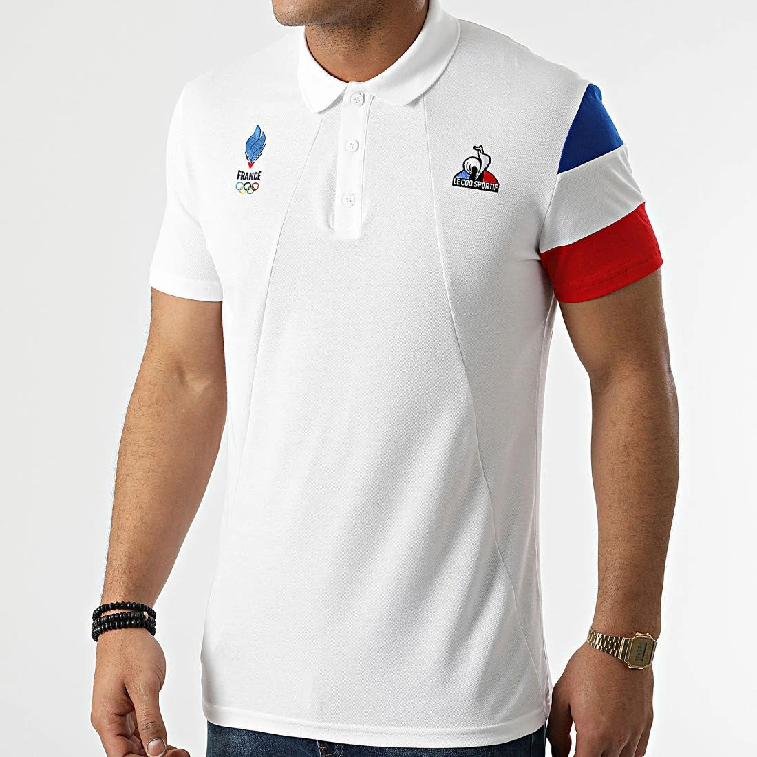 • Polo à manches courtes avec patchs Equipe de France Olympique et Le Coq Sportif brodés